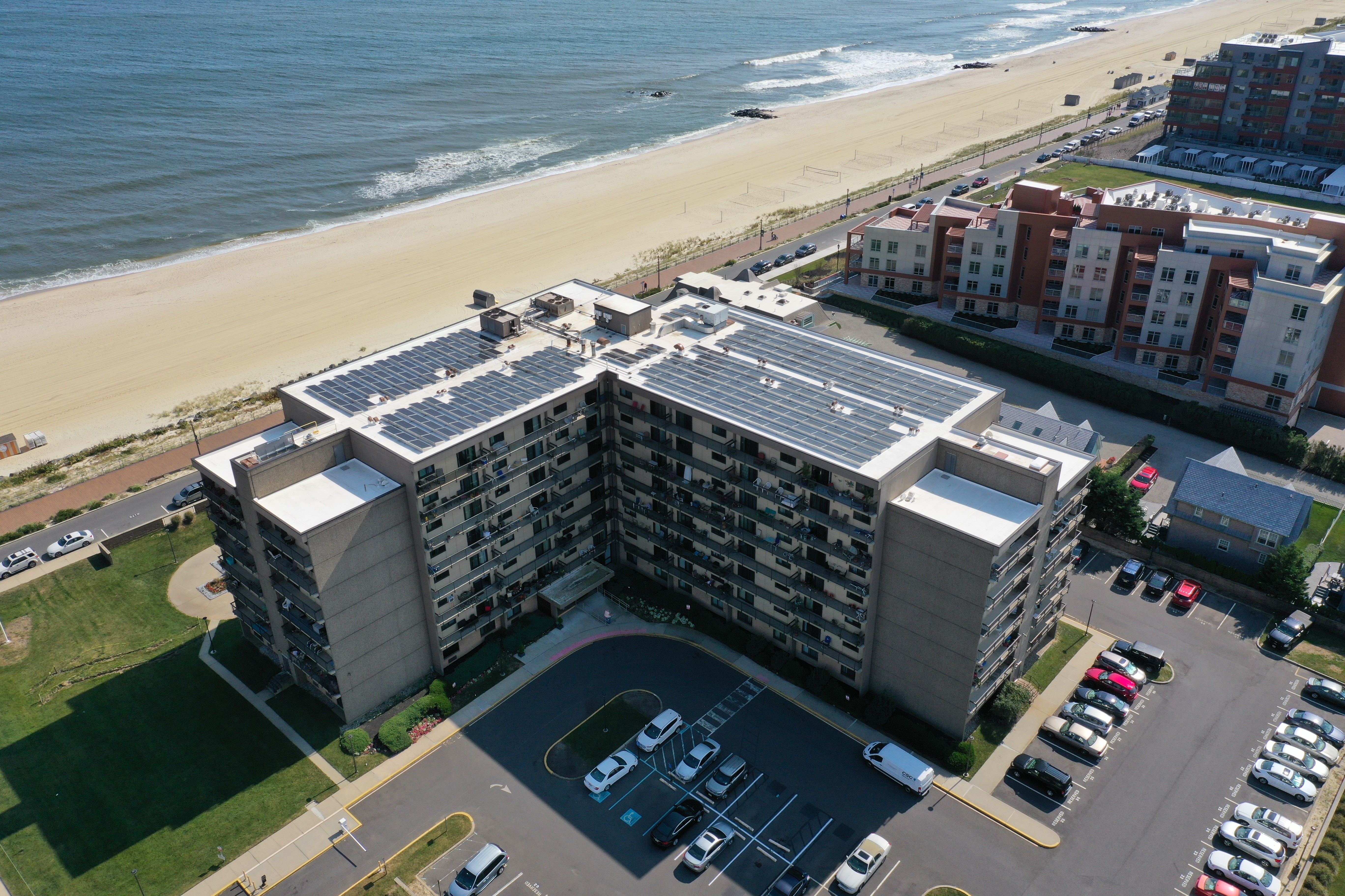 Shore Hill Apartments is a 558-unit HUD-subsidized Section 8 property in the Bay Ridge neighborhood of Brooklyn and was purchased by Jonathan Rose Companies in 2018. The community has 325 studio and 233 one-bedroom apartments, with 552 units covered by a Low-Income Housing Tax Credit program. Since the acquisition in 2018, the Jonathan Rose team received technical assistance to evaluate and design an energy retrofit and electrification plan at the complex, which resulted in a 12% reduction in electricity use, a 9% reduction in gas use, and a $126,000 decrease in annual utility savings. The comprehensive green retrofit included a rooftop solar installation funded through a combination of owner equity, Weatherization Assistance Program support, National Grid’s Direct Install program, and NYSERDA’s Multifamily Performance program. In addition, low-flow facets and showerheads, steam trap replacements, energy efficient lighting and controls, a boiler system, air sealing, and other green retrofit installations were added. In recognition of the energy and sustainability initiatives, Shore Hill Apartments is pursuing Enterprise Green Communities certification.
